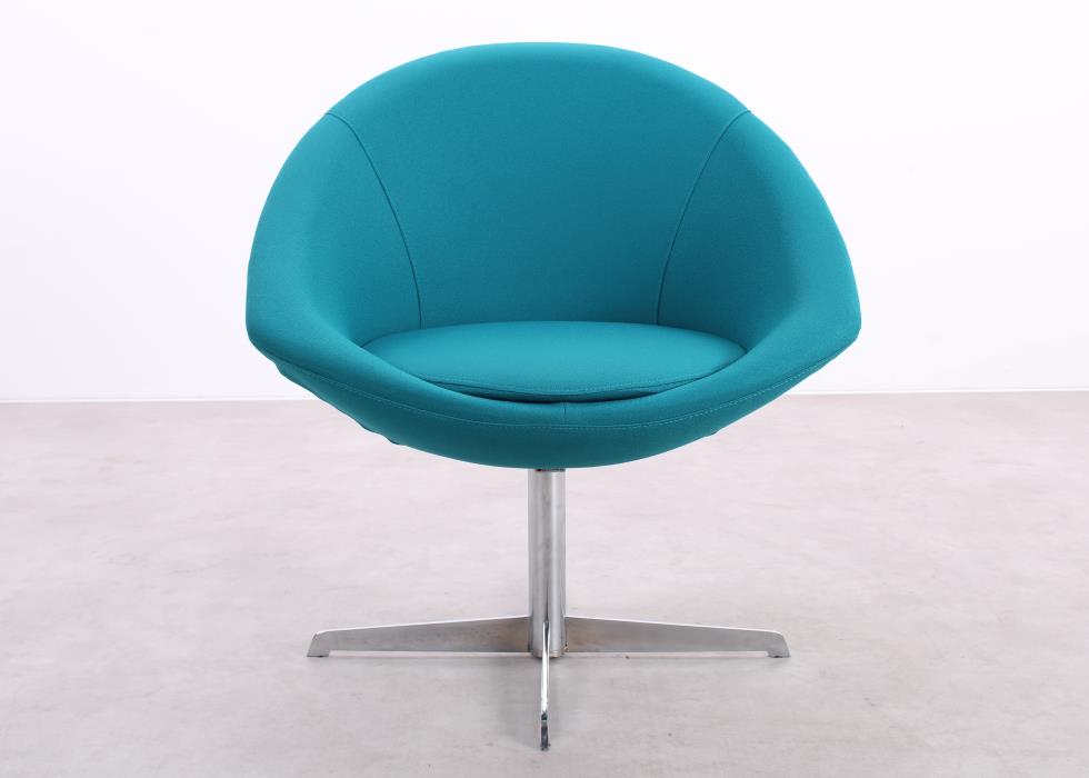Bereichern Sie Ihren Raum mit dem gebrauchten Luca, einem drehbaren Design-Sessel von Benjo. Modern überzeugt dieser Sessel mit einem exzentrischen Design und außergewöhnlichem Komfort. Die weichen Rundungen der Sitzschale werden durch den strapazierfähigen Stoffbezug perfekt ergänzt, während der verchromte Metall-Kreuzfuß für Stabilität und Eleganz sorgt. Dank des integrierten Rückdrehmechanismus kehrt der Sessel stets in seine Ausgangsposition zurück – ideal für repräsentative Arbeits- und Empfangsbereiche.