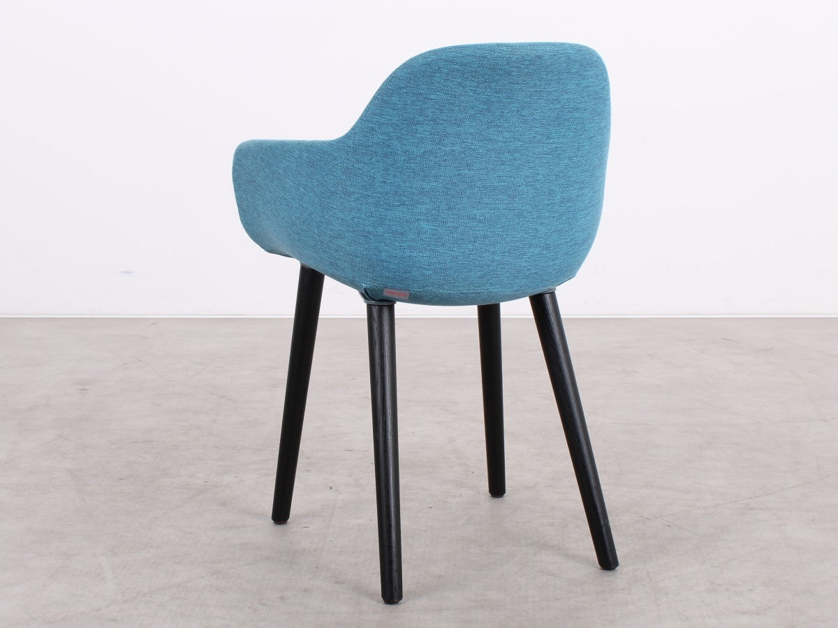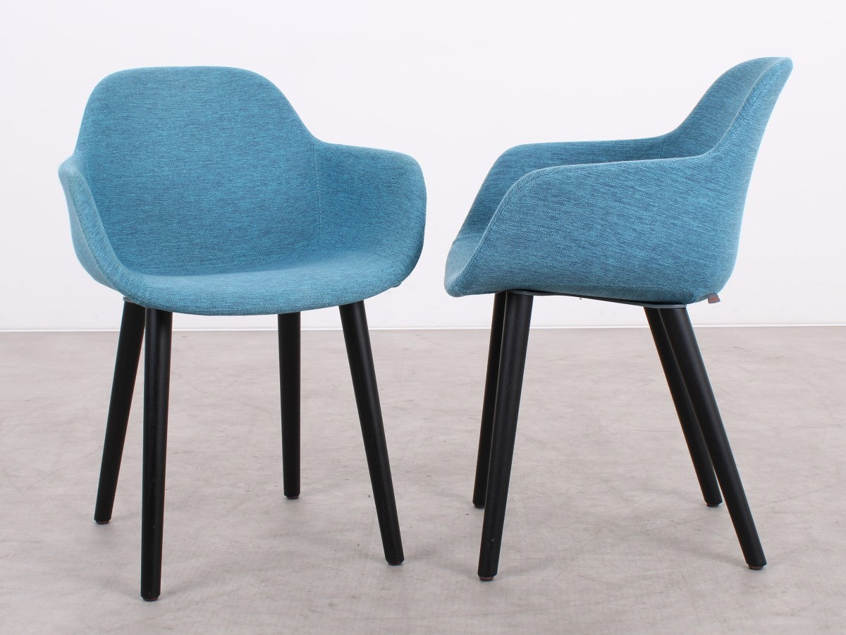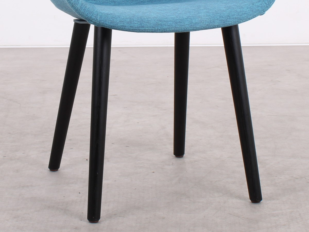 Der blaue Stoffbezug sorgt für Wärme, Komfort und einen eleganten Farbakzent. Ob im Wohnbereich, Esszimmer, Büro oder einer modernen Empfangsumgebung – der Pola Round bringt Stil und Atmosphäre in jeden Raum.