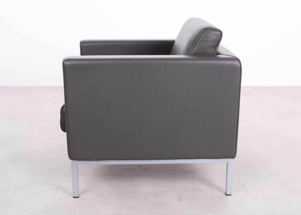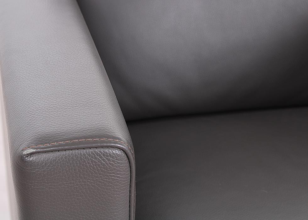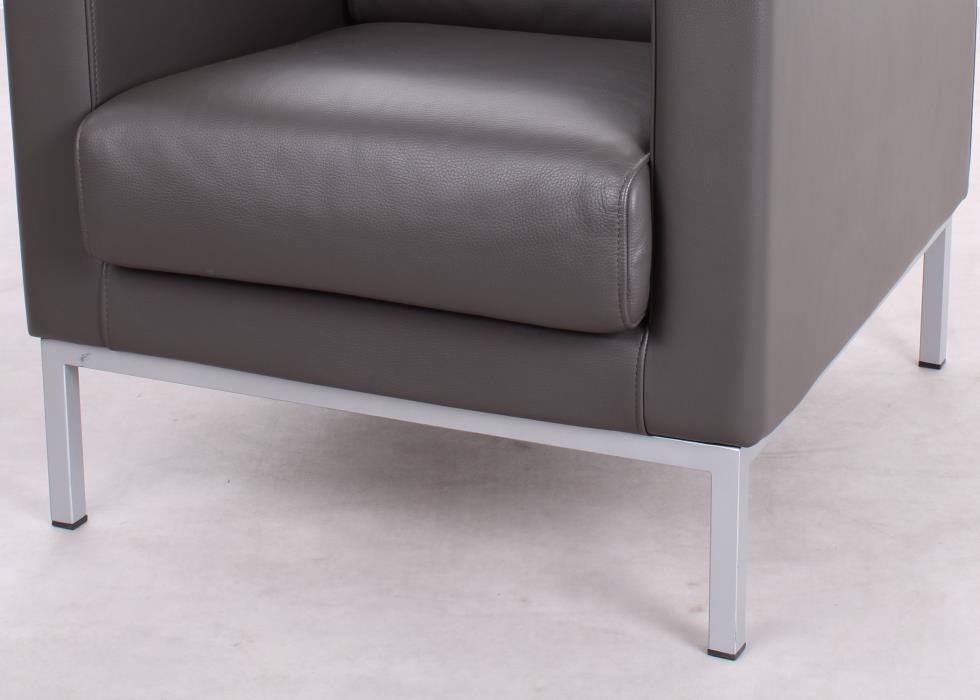 Der Cubic ist mit luxuriösem Leder bezogen, das traditionell in Italien gegerbt wurde. Das hochwertige Vollnarbenleder zeigt eine feine, natürliche Struktur und bleibt, im Gegensatz zu bearbeitetem Leder, vollständig authentisch. Diese unverfälschte Oberfläche verleiht dem Sessel seine besondere Ausstrahlung und zeitlose Qualität.