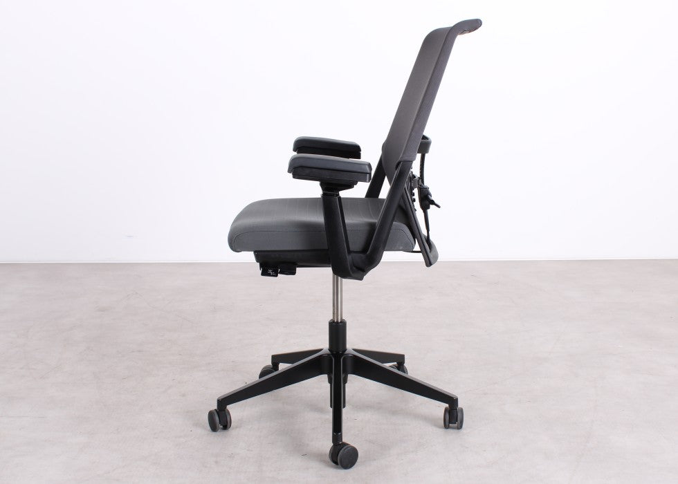Entdecken Sie den gebrauchten Comforto 5975, entworfen vom Haworth Design Studio & Simon Desanta. Dieser Bürostuhl verbindet ein schlankes Design mit intelligenter Ergonomie. Dank der dynamischen 4D-Armlehnen und der verstellbaren Lendenwirbelstütze bietet er optimale Unterstützung an Ihrem Arbeitsplatz. Die graue Polsterung in Kombination mit dem schwarzen Untergestell verleiht dem Stuhl ein modernes und stilvolles Erscheinungsbild. Genießen Sie täglich den Komfort und die Qualität des Comforto 5975.