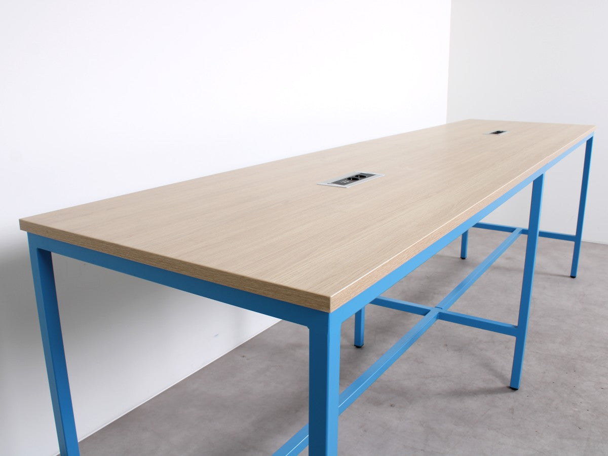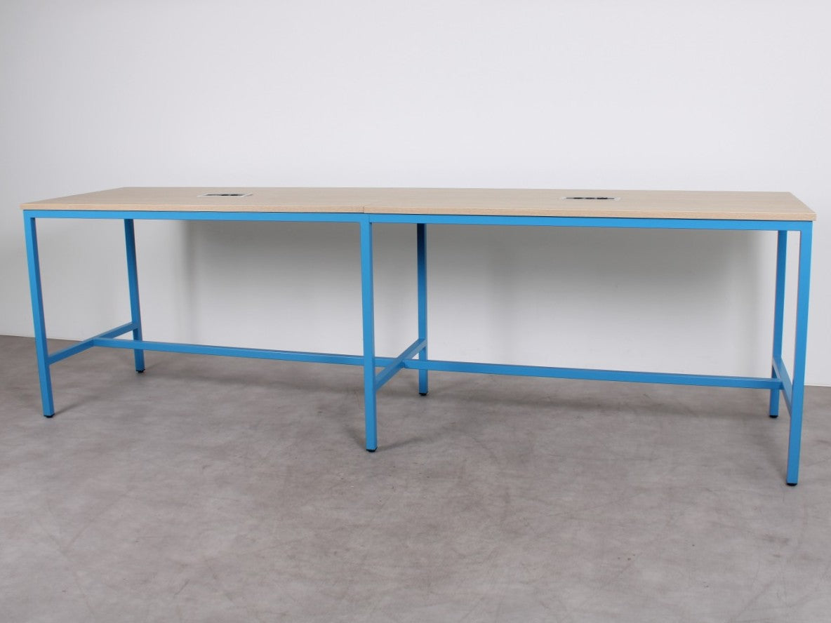 Stilvoll und funktional – der gebrauchte MR Bartisch verleiht jedem Raum Charakter. Die zweiteilige Tischplatte in Vincenza Eiche bildet einen schönen Kontrast zum blauen Metallgestell und sorgt für eine minimalistische, zugleich verspielte Optik. Dank der zwei integrierten Powerdocks eignet sich dieser Bartisch perfekt für Meetings, Zusammenarbeit und informelles Arbeiten in modernen Geschäftsumgebungen. Ideal für Büros, in denen Design und Funktionalität im Einklang stehen.