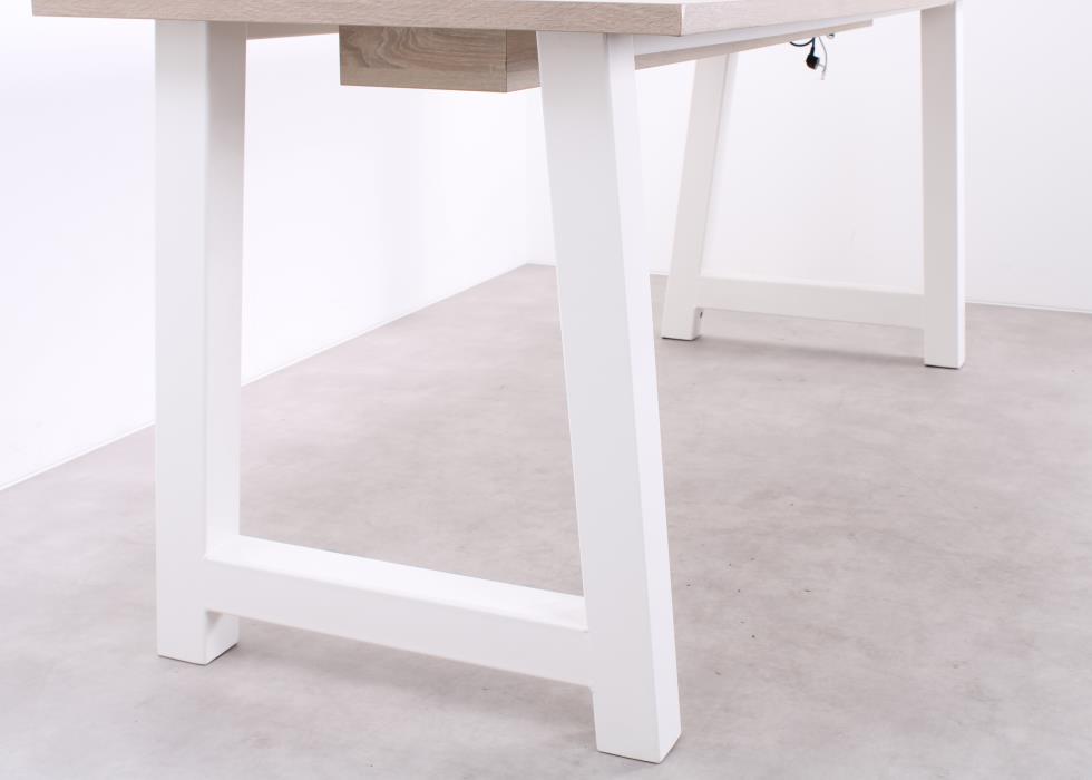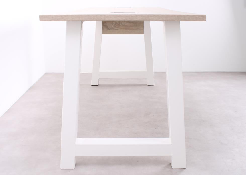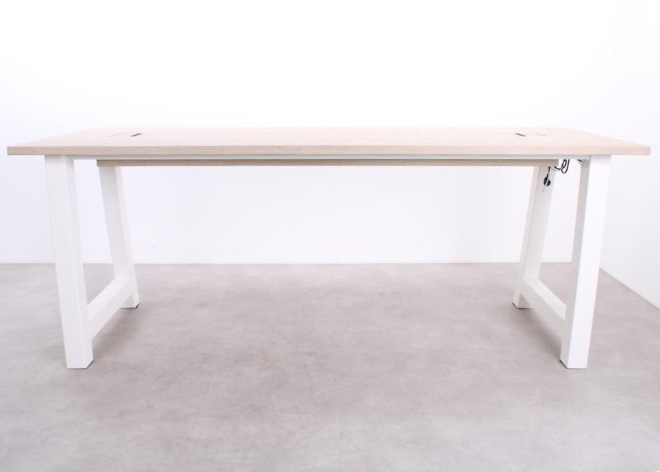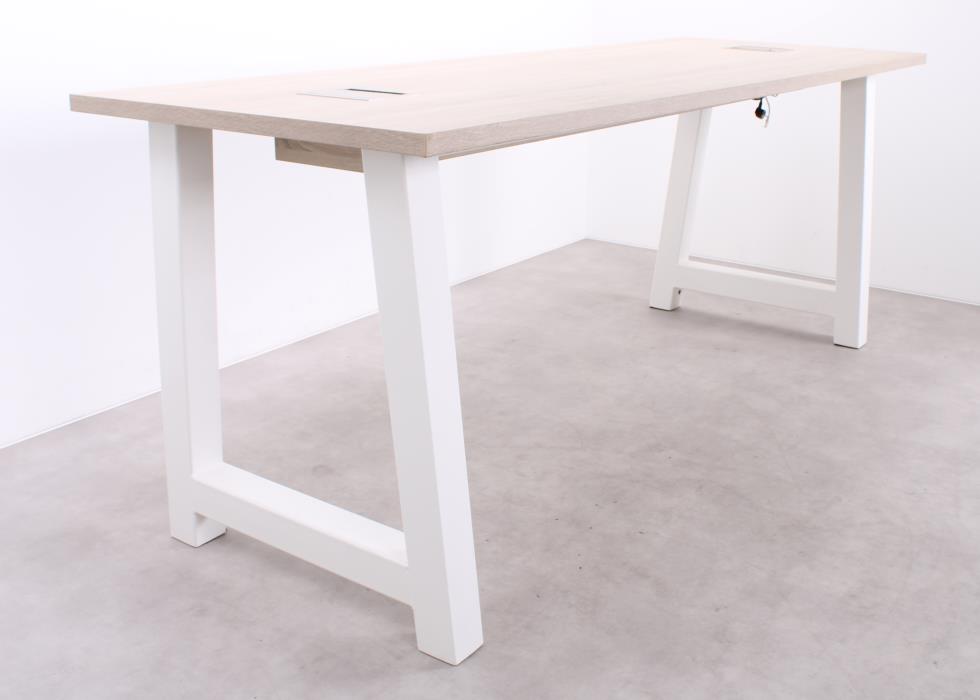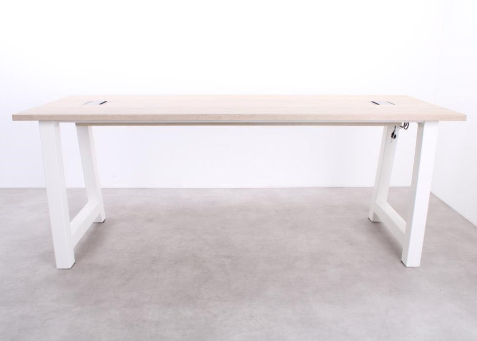 Der MR Bartisch vereint Eleganz mit Funktionalität und ist ideal für moderne Arbeitsbereiche. Die hochwertige Eichenholzplatte verleiht dem Tisch eine warme, repräsentative Ausstrahlung, während das weiße Metallgestell für maximale Stabilität sorgt. Dank der zwei integrierten Powerdocks ist der Bartisch perfekt auf die Anforderungen zeitgemäßer Geschäftsumgebungen abgestimmt – von Meetings bis zu informellen Arbeitsmomenten.