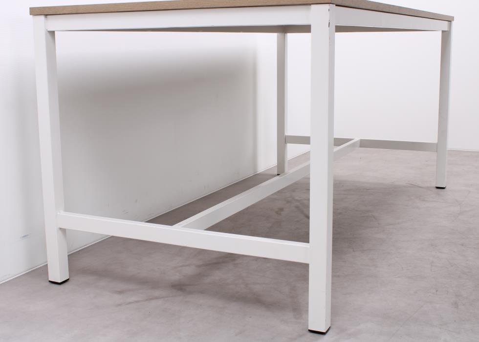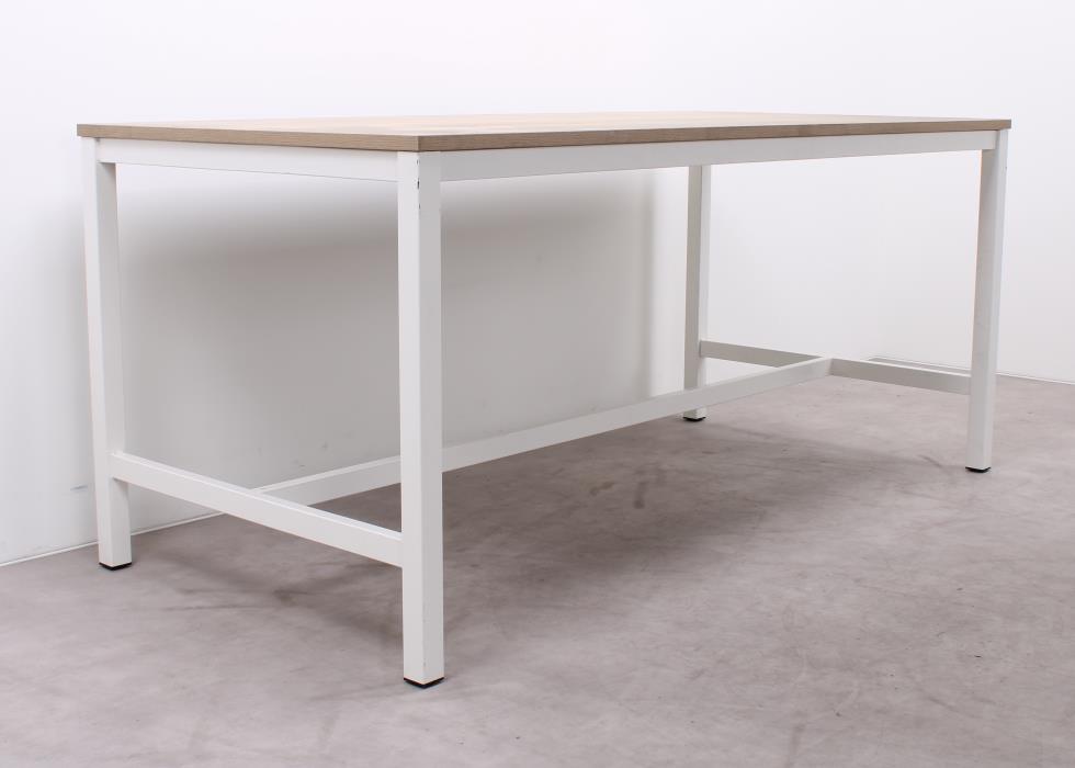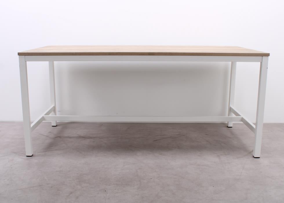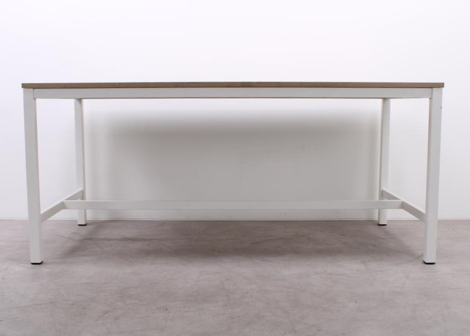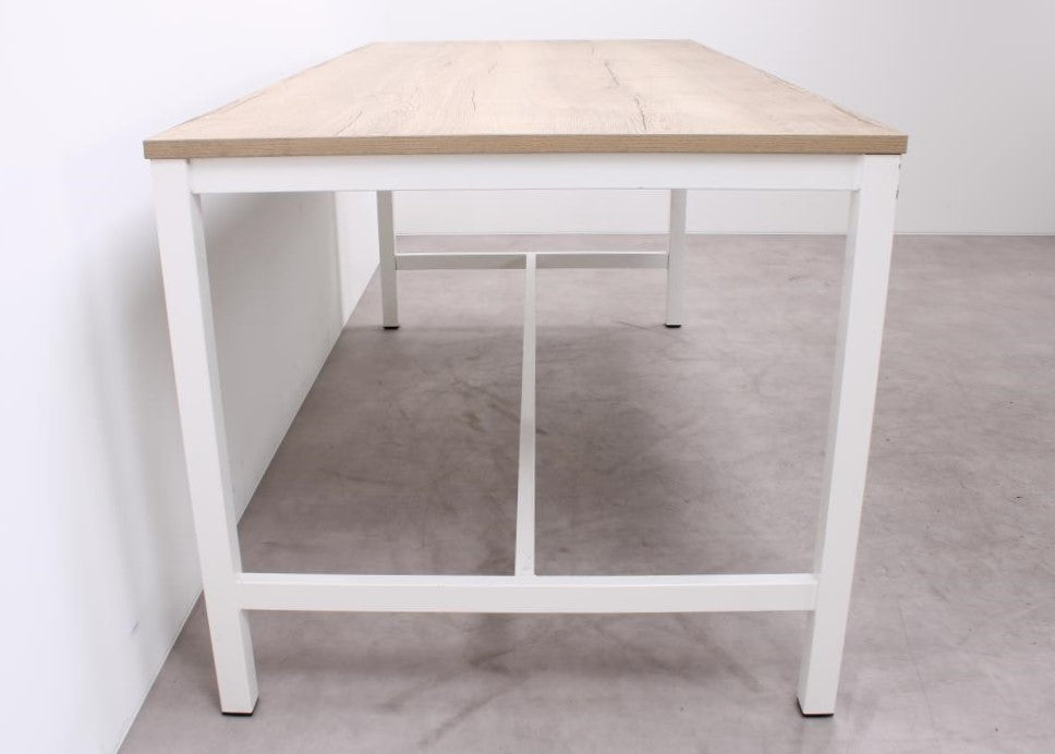 Der MR-Bartisch vereint minimalistisches Design mit Funktionalität und passt sich mühelos jeder professionellen Umgebung an. Das weiße Metallgestell bildet eine stabile Basis, während die neue Melamin-Tischplatte in der Farbe Robust Oak dem Tisch eine warme, hochwertige Ausstrahlung verleiht. Ob für Besprechungsräume, Empfangsbereiche oder informelle Arbeitszonen – der MR-Bartisch überzeugt durch klare Linien, Stabilität und zeitlose Eleganz.