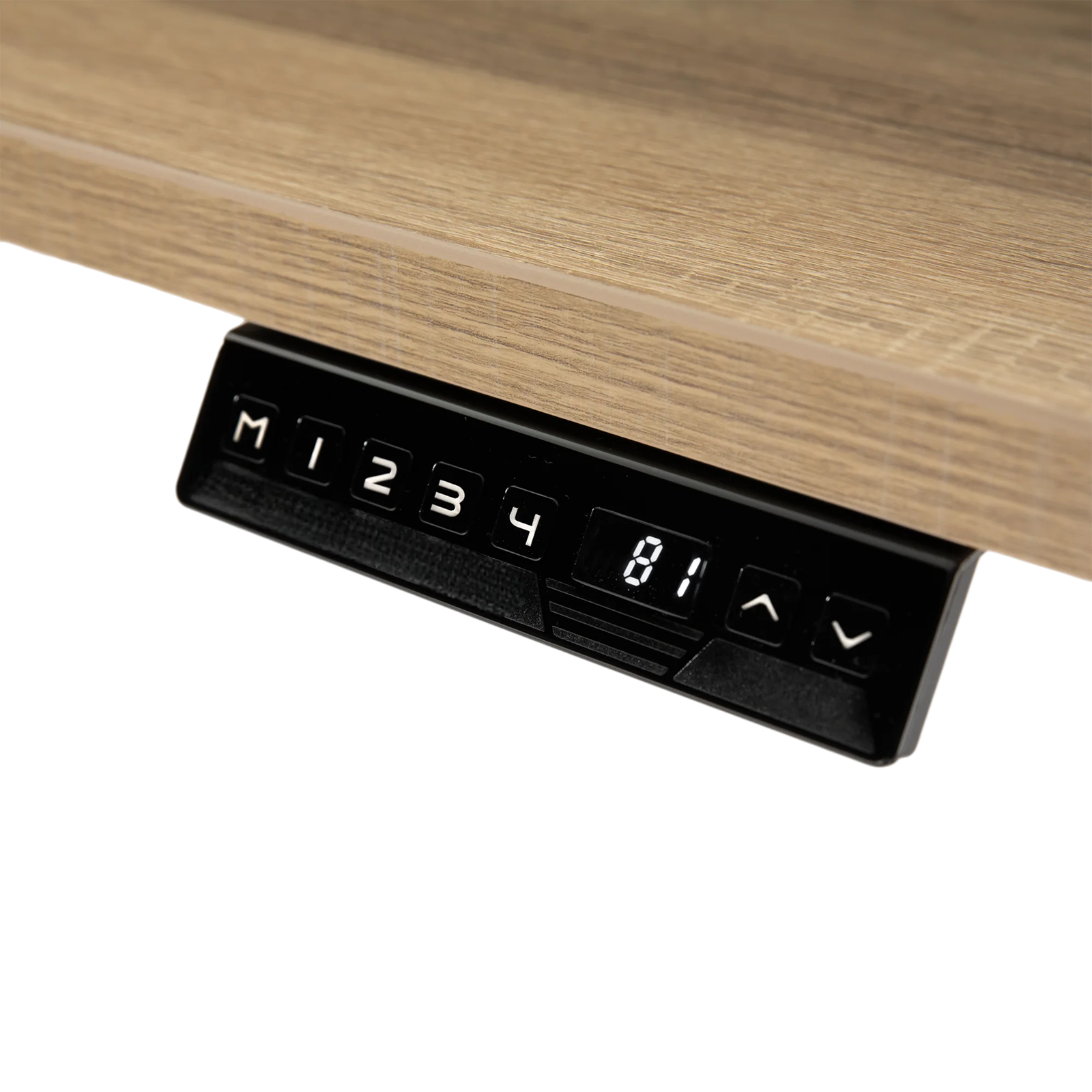 Die variable Höhenverstellung erfolgt durch die zwei leistungsstarken, integrierten Motoren, die für eine reibungslose und schnelle Anpassung sorgen. Die drei Memory-Funktionen ermöglichen es Ihnen, Ihre bevorzugten Höheneinstellungen zu speichern und mit einem einfachen Tastendruck jederzeit abzurufen. Somit fällt die Anpassung an wechselnde Arbeitsanforderungen besonders leicht.