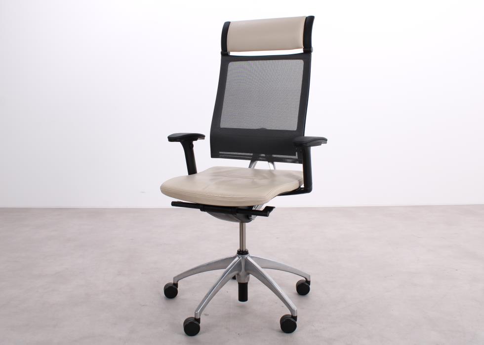 Der Sedus Open Up ist mit einem polierten Aluminium-Fußkreuz und neu gepolsterten Leder-Armlehnen ausgestattet. Dank der integrierten Similarmechanik und Dorsokinetik können Sie nicht nur bequem sitzen, sondern sich auch weit zurücklehnen – die Rückenlehne lässt sich bis zu 45° neigen. Die flexible Befestigung der Rückenlehne unterstützt Ihren Körper bei Dreh- und Seitwärtsbewegungen und sorgt für uneingeschränkte Bewegungsfreiheit im Arbeitsalltag.