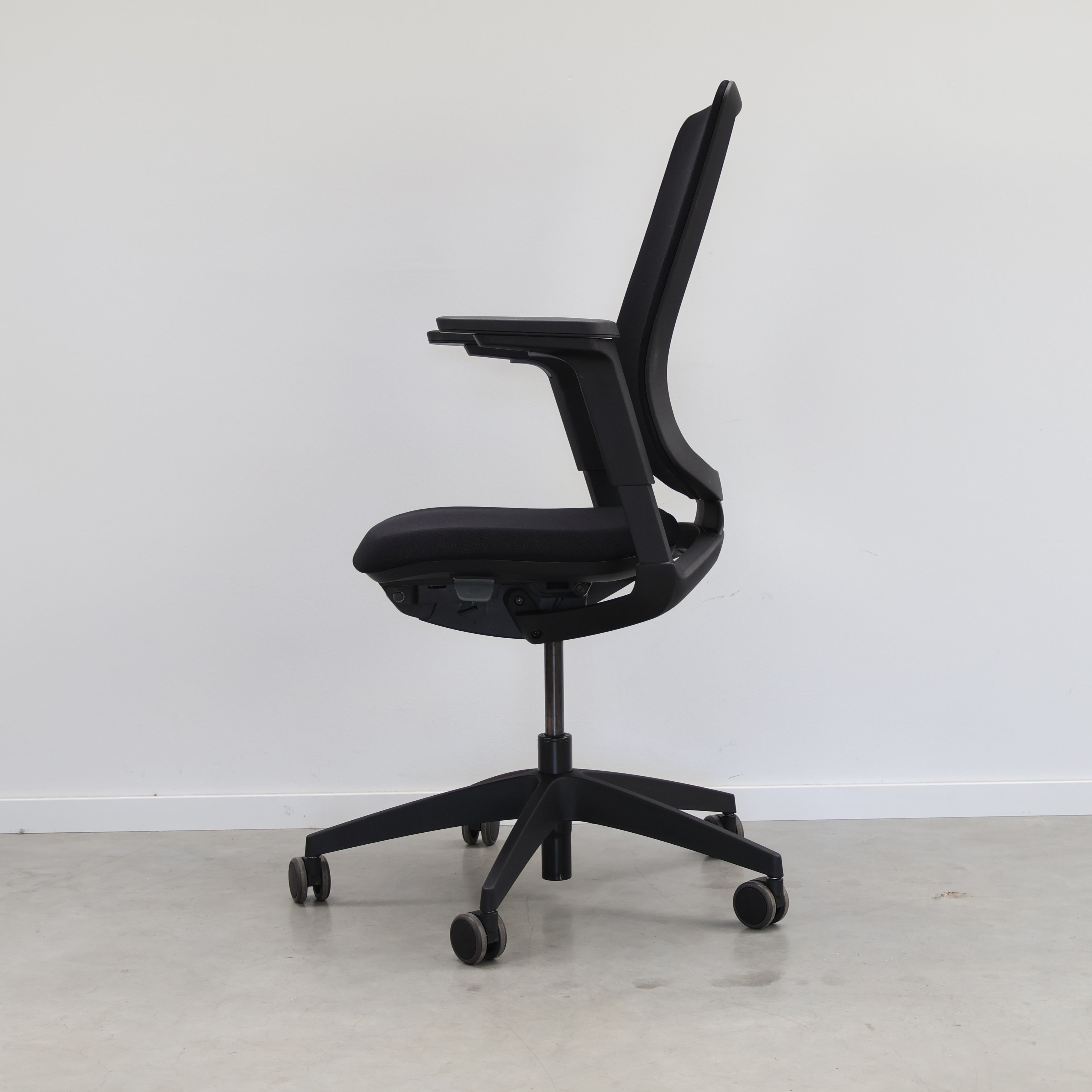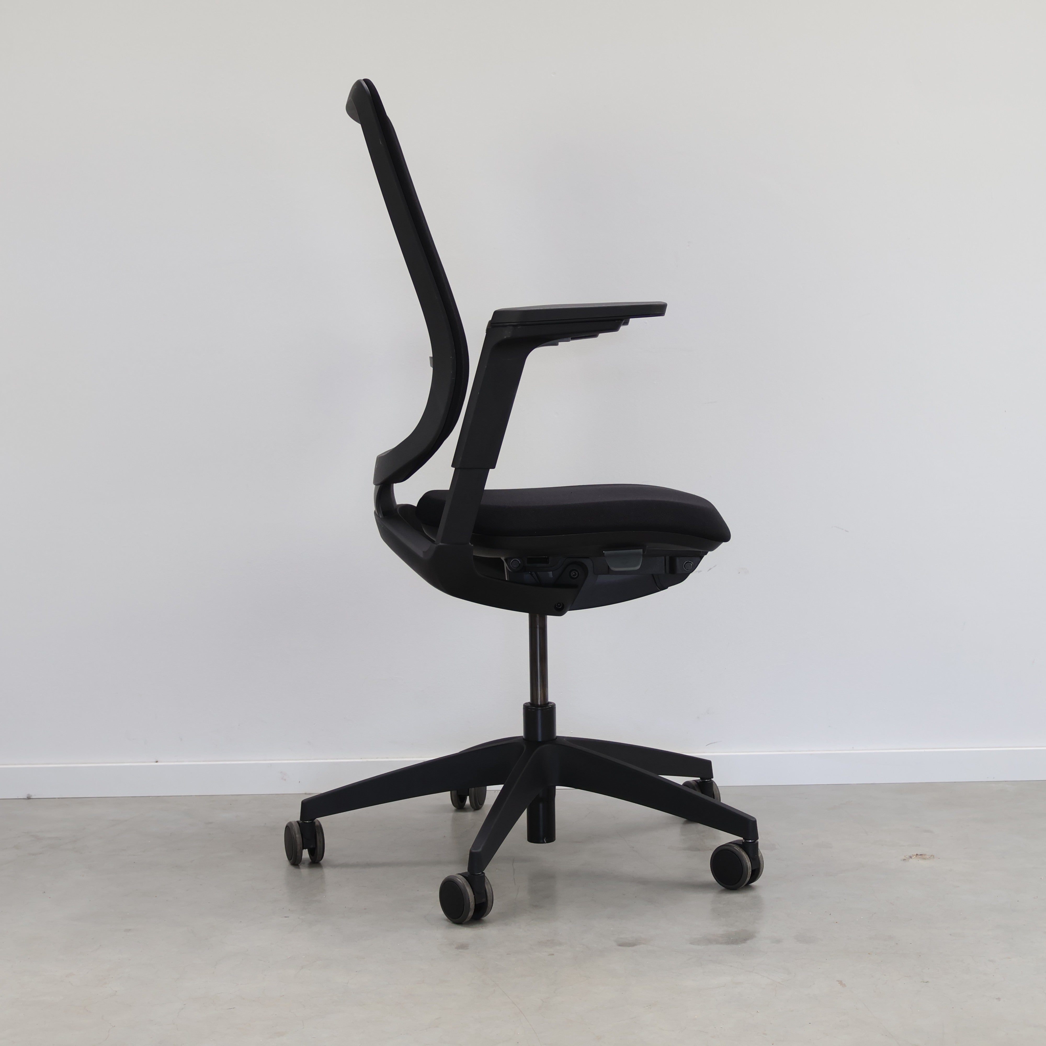 Der Sedus Se:Flex vereint ergonomisches Sitzen mit modernem Design. Die atmungsaktive Netzrückenlehne und die gepolsterte Sitzfläche sorgen für hohen Komfort. Sitzhöhe und -tiefe lassen sich individuell anpassen, ebenso wie die in Höhe, Tiefe und Schwenkung verstellbaren Armlehnen. Dank Synchronmechanik unterstützt der Stuhl jede Bewegung und fördert aktives, gesundes Arbeiten. Das stabile Kunststoff-Fußgestell mit Standardrollen rundet den vielseitigen Bürodrehstuhl ab.