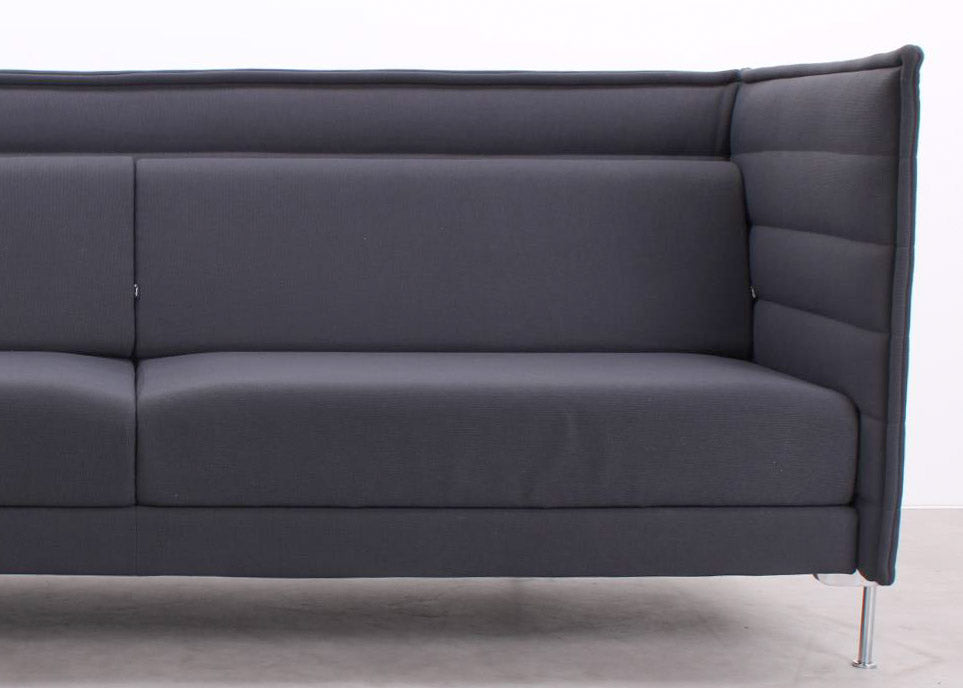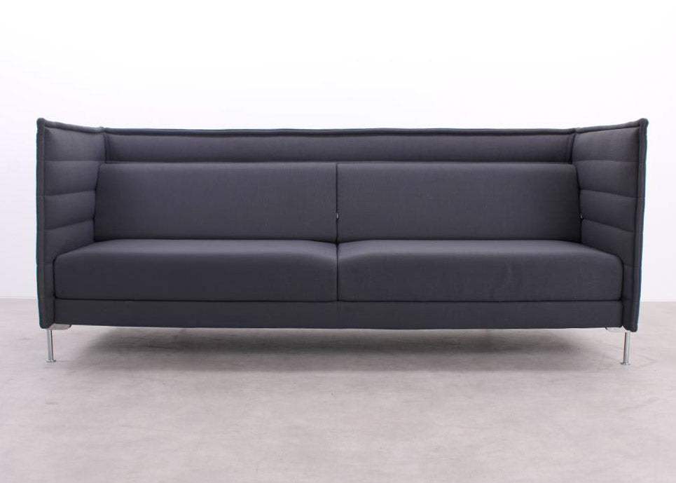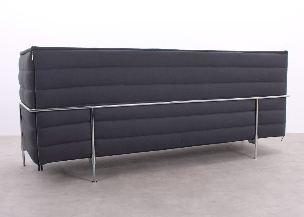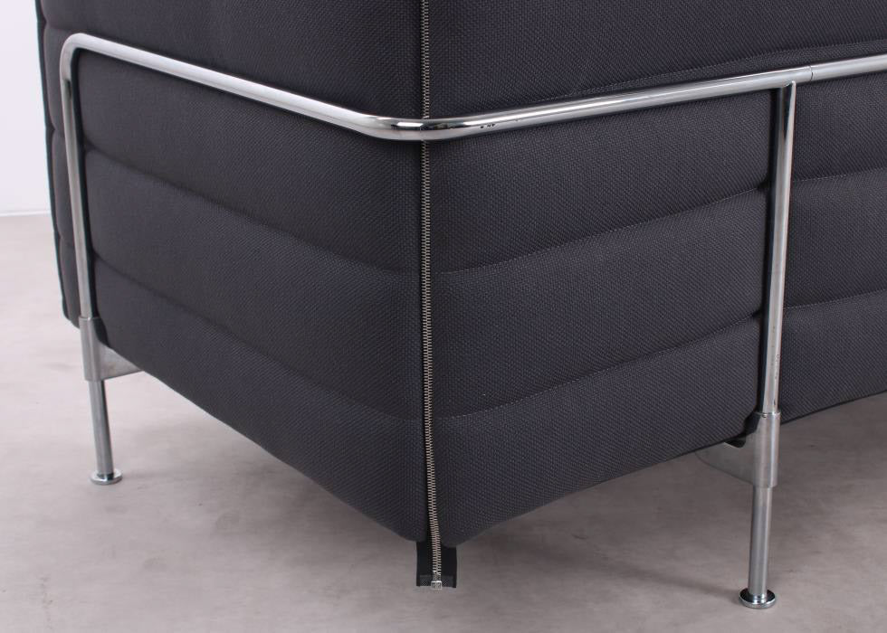 Erleben Sie Stil, Komfort und Privatsphäre mit der gebrauchten Alcove von Vitra, entworfen von Ronan & Erwan Bouroullec. Die nachhaltige, anthrazitfarbene Polsterung aus recyceltem Polyester harmoniert perfekt mit dem verchromten Stahl-Vierfußgestell und verleiht der Sitzbank eine zeitgemäße, ruhige Ausstrahlung. Die hohen Seiten- und Rückenelemente bieten akustische Abschirmung und schaffen einen geschützten Ort für konzentriertes Arbeiten, informelle Meetings oder entspannte Gespräche in modernen Büro- und Loungebereichen.