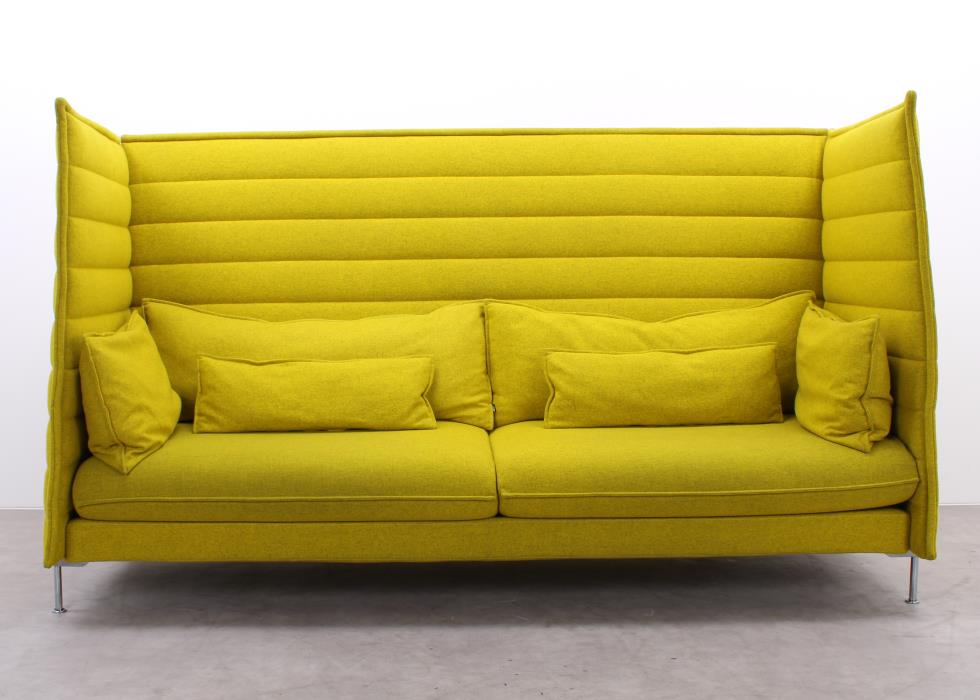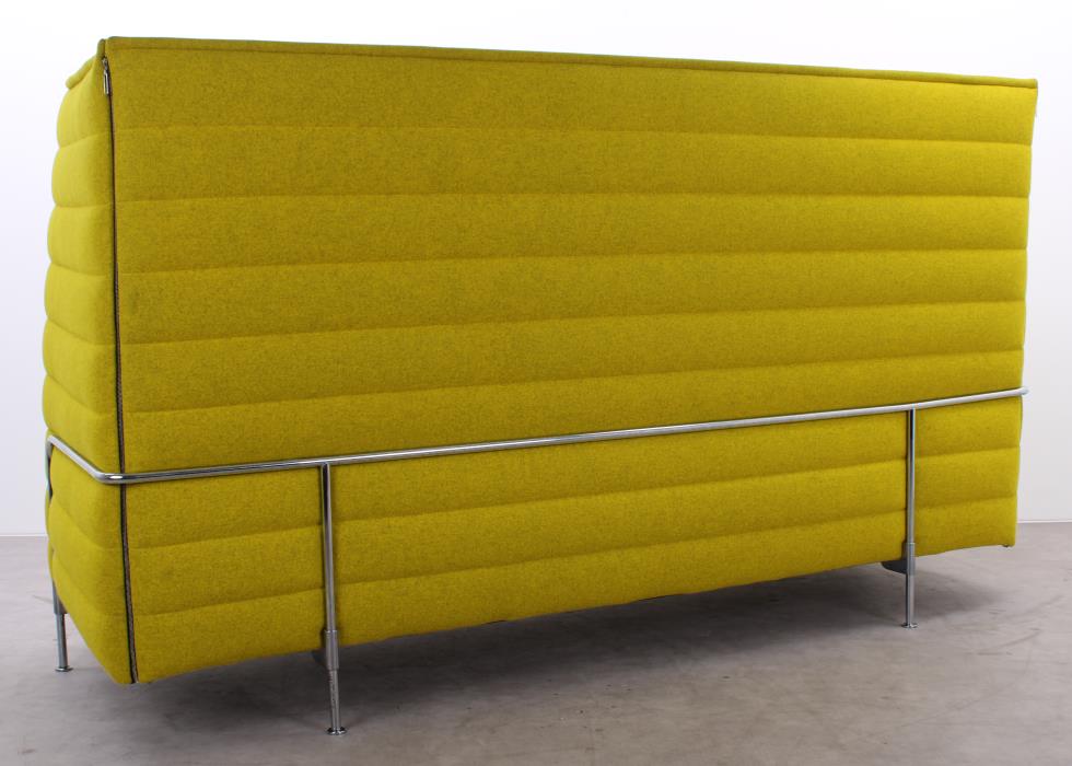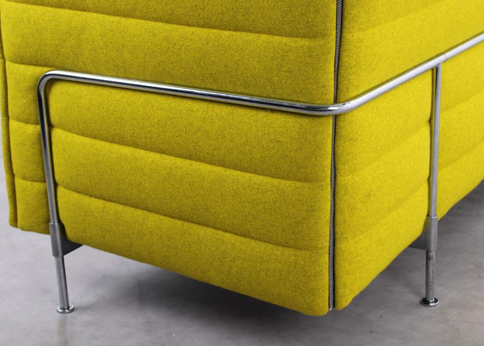 Erleben Sie Stil, Komfort und Privatsphäre mit der gebrauchten Alcove von Vitra, entworfen von Ronan & Erwan Bouroullec. Die gelbe Wollpolsterung verleiht dem Sofa eine warme, einladende Ausstrahlung und wird durch ein stabiles Metall-Vierfußgestell stilvoll ergänzt. Die hohen Seiten- und Rückenelemente sorgen für akustische Dämpfung und schaffen einen geschützten Rückzugsort, während die weichen Kissen zusätzlichen Komfort bieten. Ob für entspannte Momente oder inspirierende Gespräche – die Alcove ist ein charakterstarkes Lounge-Sofa für moderne Büro- und Arbeitsumgebungen.