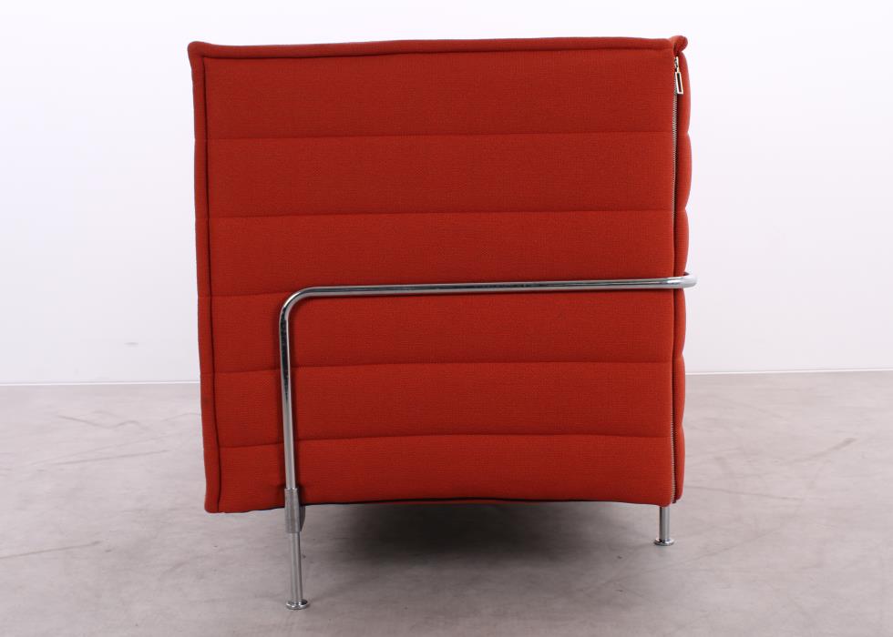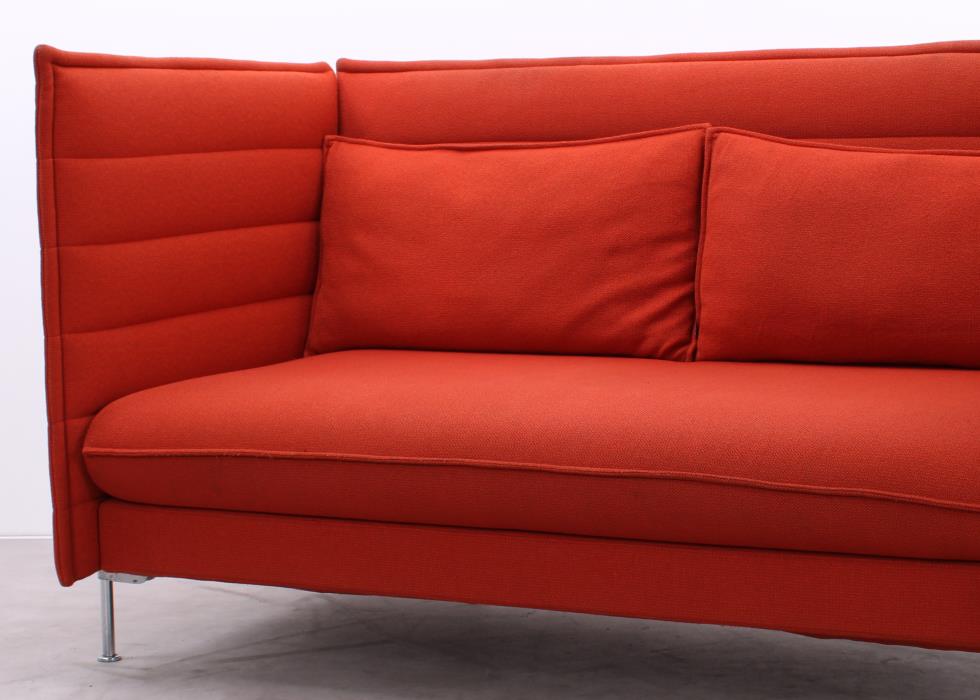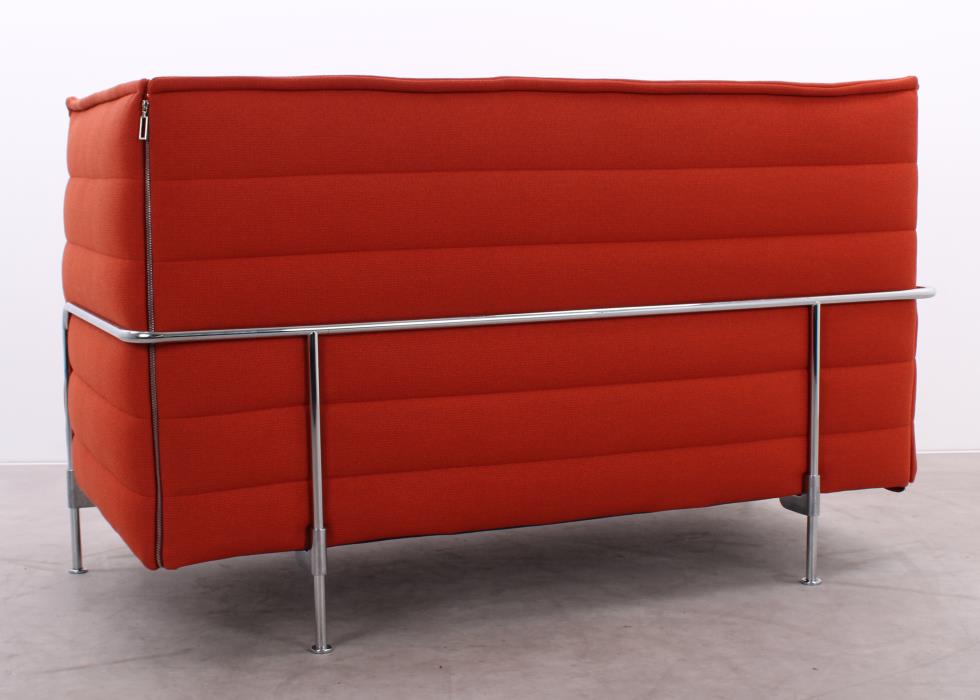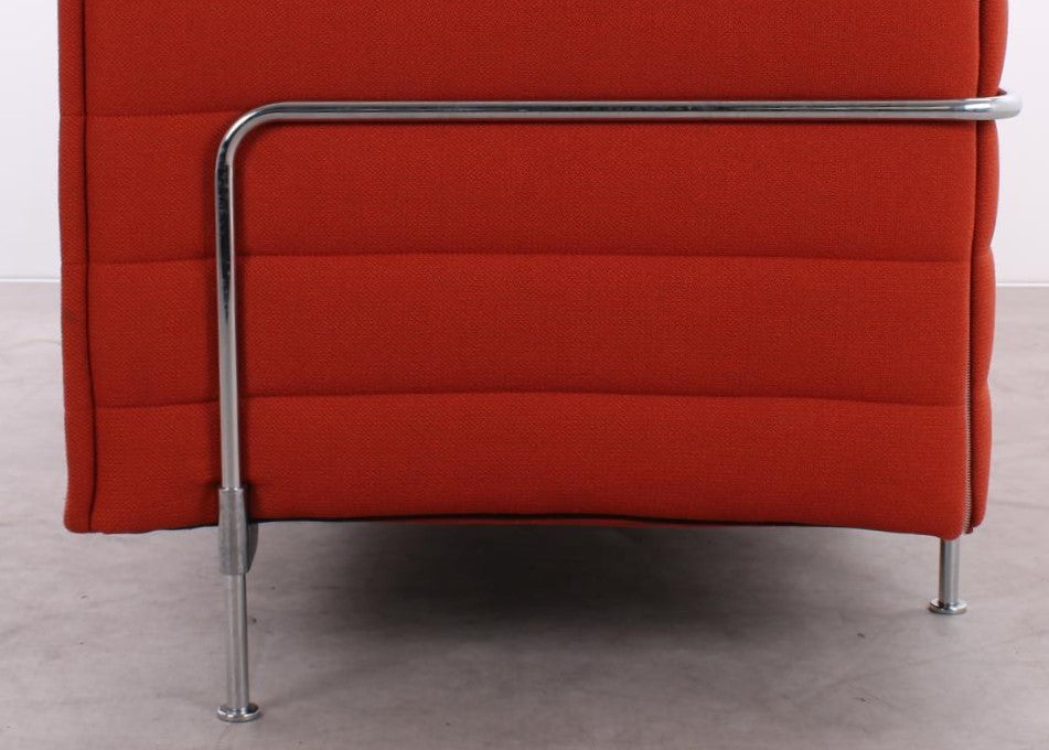 Erleben Sie Stil, Komfort und Privatsphäre mit der gebrauchten Alcove von Vitra, entworfen von Ronan & Erwan Bouroullec. Der orangefarbene Wollbezug verleiht der Sitzbank eine warme, einladende Ausstrahlung und bildet einen spannenden Kontrast zum verchromten Stahl-Vierfußgestell. Die hohen Seiten- und Rückenelemente sorgen für akustische Dämpfung und schaffen eine geschützte, gemütliche Atmosphäre, die durch die weichen Kissen zusätzlich verstärkt wird. Ideal für Lounges, Büros oder informelle Besprechungsbereiche, in denen Komfort und Design zusammenkommen.